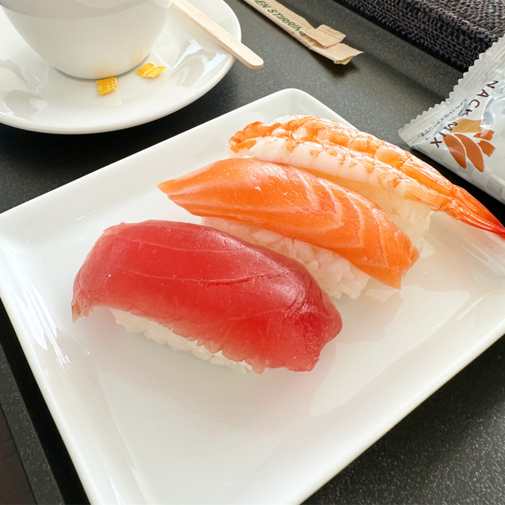 エバー航空はスターアライアンスメンバーなので、ANAラウンジを利用可能。この時はヌードルバーがなくて寿司のコーナーがありました。せっかくなので寿司をつまみつつ、搭乗までリラックスできました。