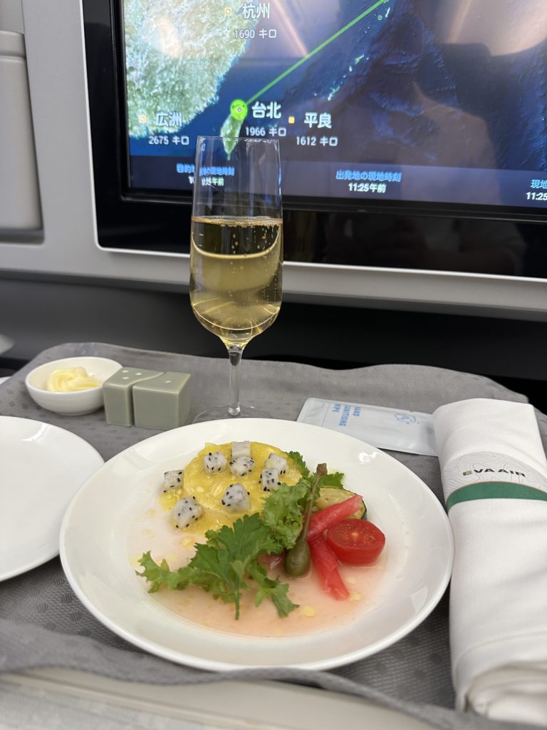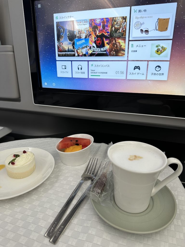 エバー航空の787-10は最新機材ならではの快適さがあり、ビジネスクラスのサービスはとても洗練されていました。機内食やシート、スタッフのホスピタリティまで全てが丁寧で、短距離ながらも「贅沢な旅」を味わえるフライトでした。